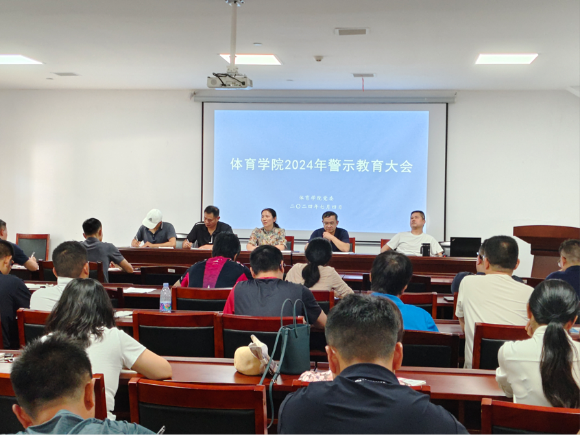 为进一步推进党纪学习教育走深走实,让廉洁意识深入人心,7月4日下午,体育学院党委在20205会议室召开学院2024年警示教育大会。党委书记李丽荣出席会议并讲话,院长李佳川主持会议。全体院领导、全院教师参加会议。