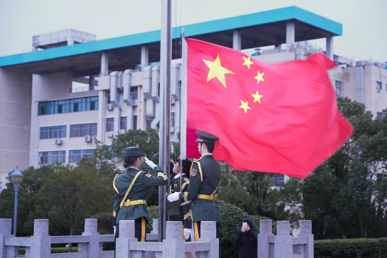 随着激昂雄壮的《义勇军进行曲》奏响,五星红旗迎着朝阳冉冉升起、猎猎飘扬。全体人员昂首肃立、神情肃穆,向国旗行注目礼,目光紧紧追随着鲜红的旗帜,心中涌动着对祖国的无限崇敬与赤诚热爱,使命感与责任感在每个人心中油然而生。