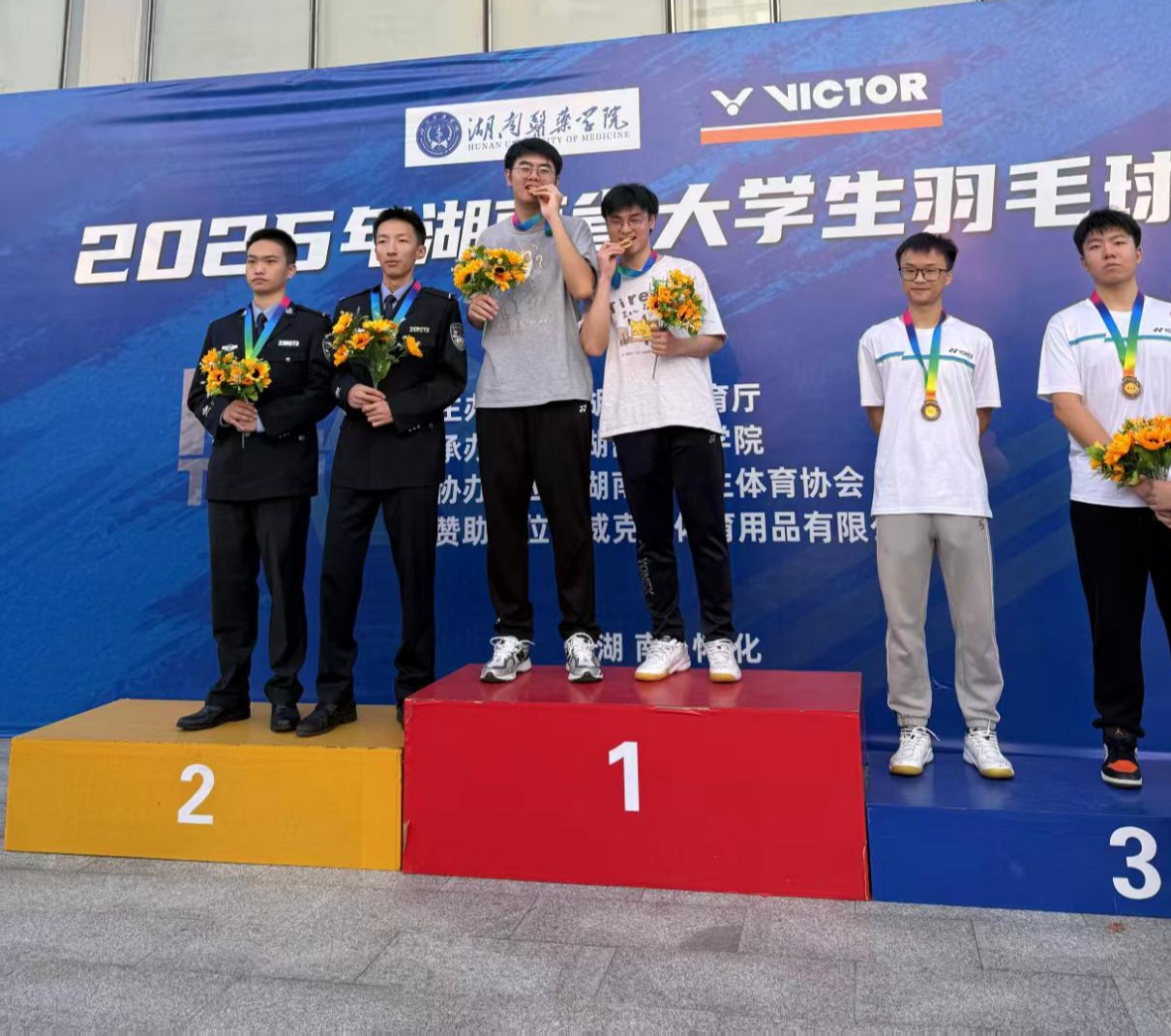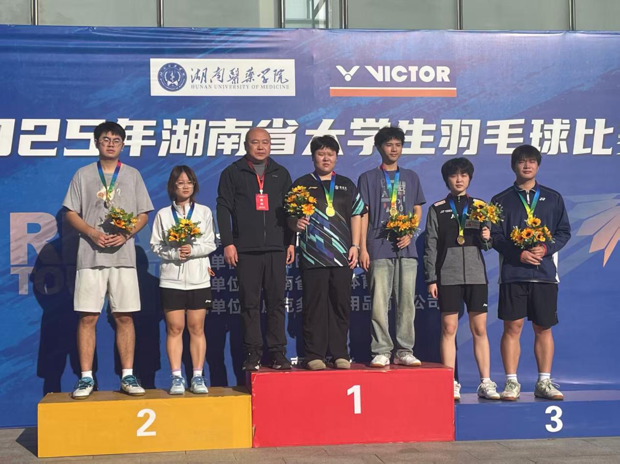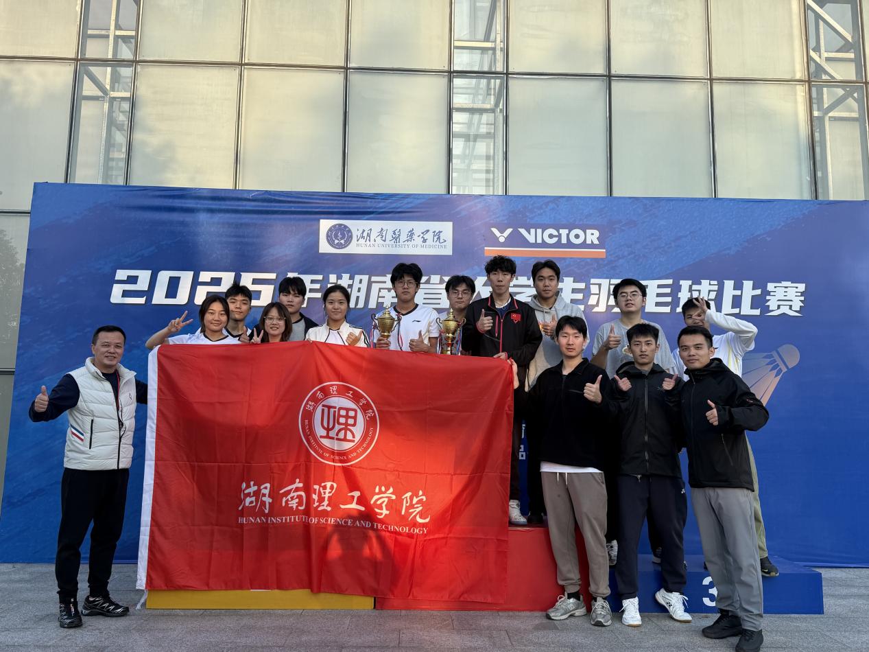 湖南理工学院羽毛球队甲乙两组12名队员,在带队老师罗正、张子靖、夏伟峰的专业指导下,全体队员奋勇拼搏、默契协作,最终斩获甲组1金1银、乙组多项佳绩,用实力为校争光。