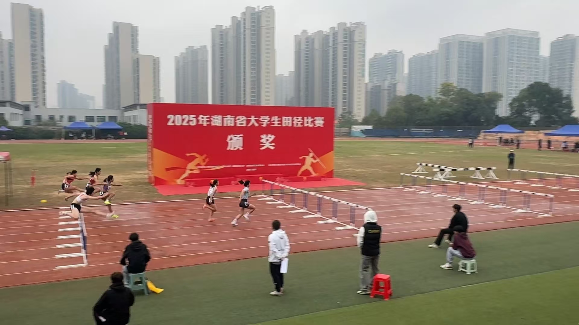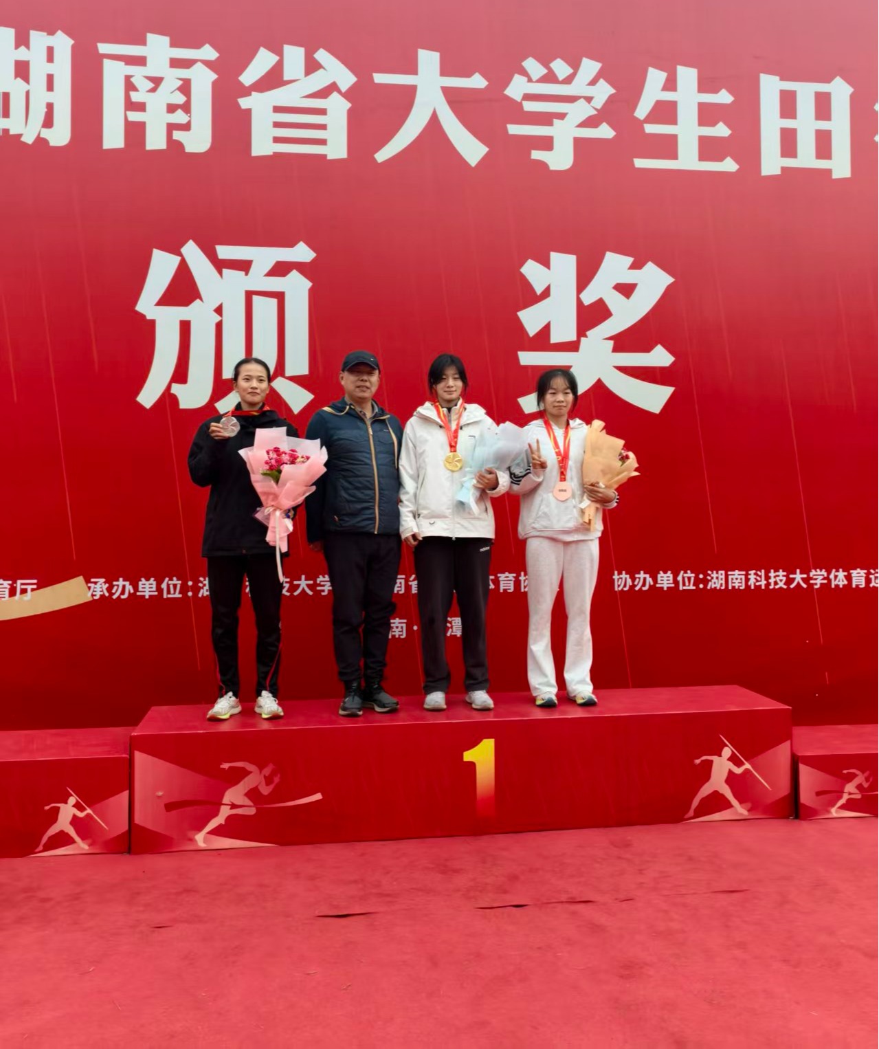 2025年湖南省大学生田径运动会于10月26日至11月1日在湖南科技大学举办,圆满落幕。本次运动会共有21个学院组代表队参赛,402名学生同台竞技、展现风采。湖南理工学院田径代表队在带队老师张可、龙海涛的悉心指导下,不仅斩获2金1银的优异成绩,更实现多项突破,为校争光添彩。