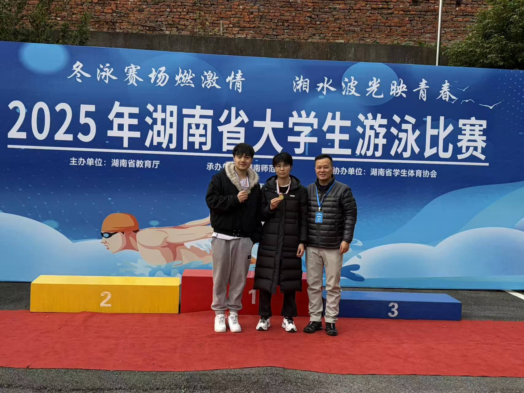 12月18日,湖南省大学生游泳比赛在湖南师范大学体育学院游泳馆落下帷幕。赛事共吸引了36所高校424名运动员参赛。我校游泳队在领队张一龙,教练夏伟峰老师的带领下,选派李旖旎、刘哲柯两位同学参加此次比赛。在强手如林的激烈竞争中,我校游泳队勇夺两金两银,打破三项赛事记录。