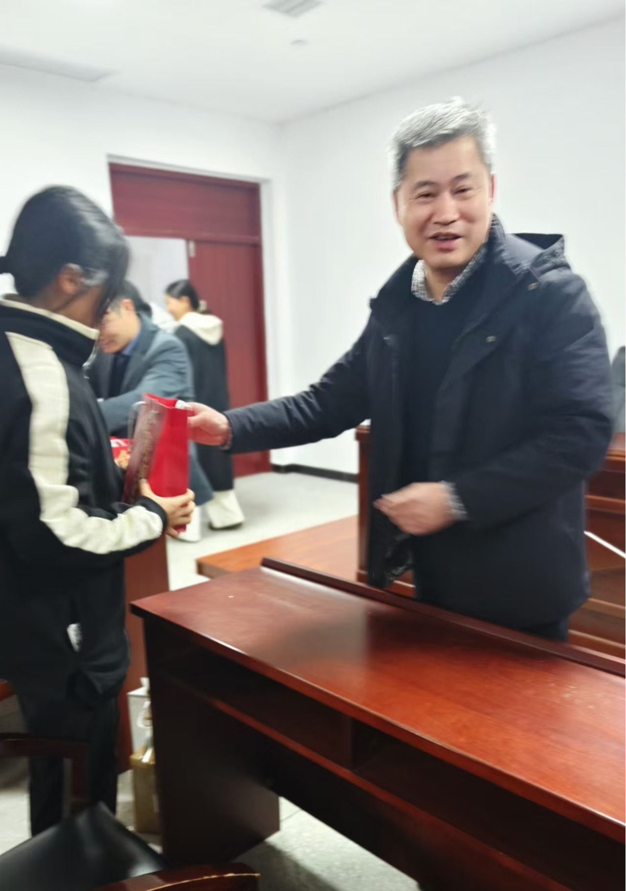 讲话结束后,学院领导为考研学子逐一发放印有“金榜题名”的慰问小礼包,红色的礼品袋传递着学院的关怀与美好期许。学子们纷纷表示,感受到了学院的温暖,将把这份鼓励转化为备考动力,全力以赴冲刺考研。