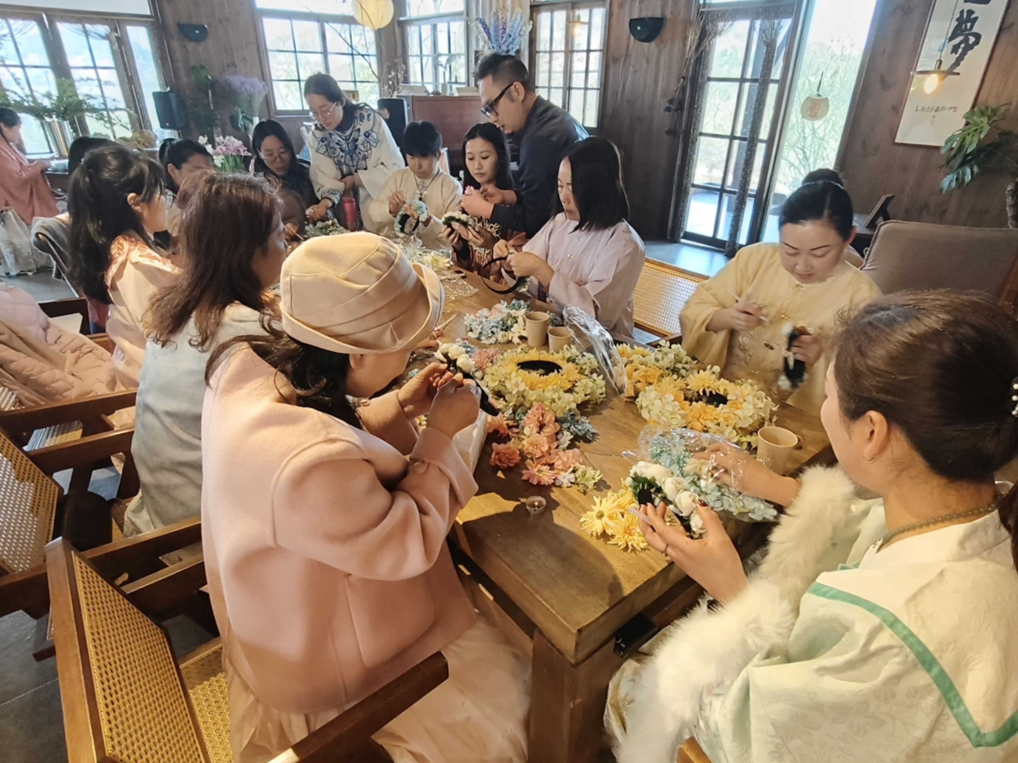 在手工簪花环节,女教职工们化身古韵佳人,沉浸式解锁非遗簪花的独特魅力。大家亲手选材、搭配、制作专属簪花发饰,指尖翻飞间,感受非遗“簪花围”的工艺之美,触摸藏在传统技艺里的历史温度。