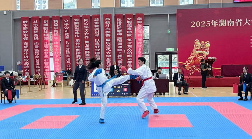 2025年10月31日-11月1日,由湖南省教育厅主办、湖南省大学生体育协会协办、张家界学院承办的2025年湖南省大学生空手道比赛在张家界开赛。本次比赛吸引全省26所高校参赛,设男、女高水平组、专业组、阳光组、高职高专组多个组别,近200名运动员同台竞技,以赛会友,传承空手道运动精神,展现湖湘学子青春风采。